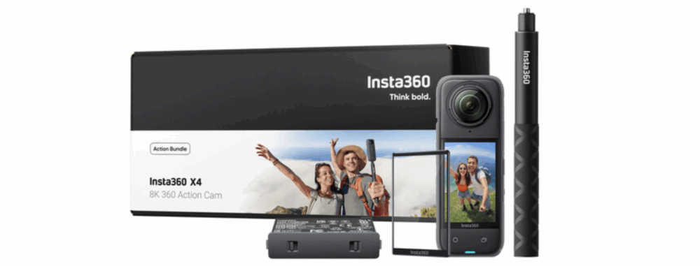 The INX4AKIT Video Kit is well-suited for livestreamers or beginner videographers looking for a streamlined setup. The kit includes a Insta360 X4 360° 8K Camera, an Insta360 Screen Protector for X4, an Insta360 Invisible Selfie Stick (44.9″, Black), and an Insta360 Rechargeable 2290mAh Battery for X4 Camera.