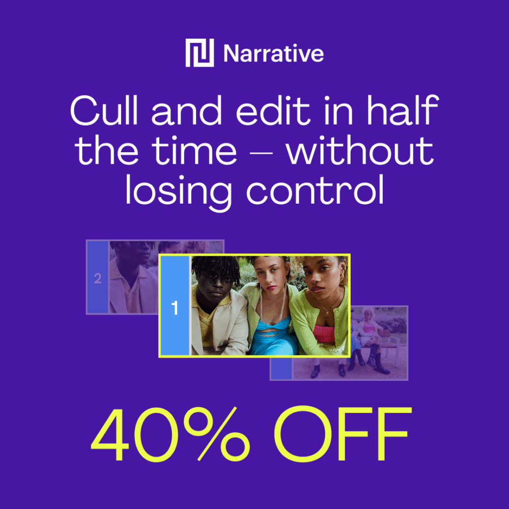 Narrative is fast, AI-assisted culling and editing software that keeps you in control while dramatically speeding up your workflow. With intuitive tools like Scenes View and Close-ups plus seamless Lightroom export, it makes high-volume editing quick and easy. (Learn More)