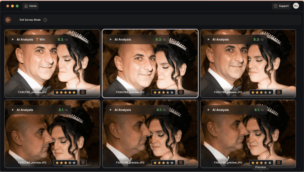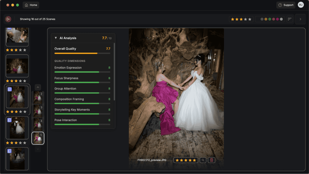 The new AI culling feature goes beyond blur detection to understand the flow of a wedding day, identifying key moments, emotional reactions, and other highlights to speed up review and support same-day delivery.