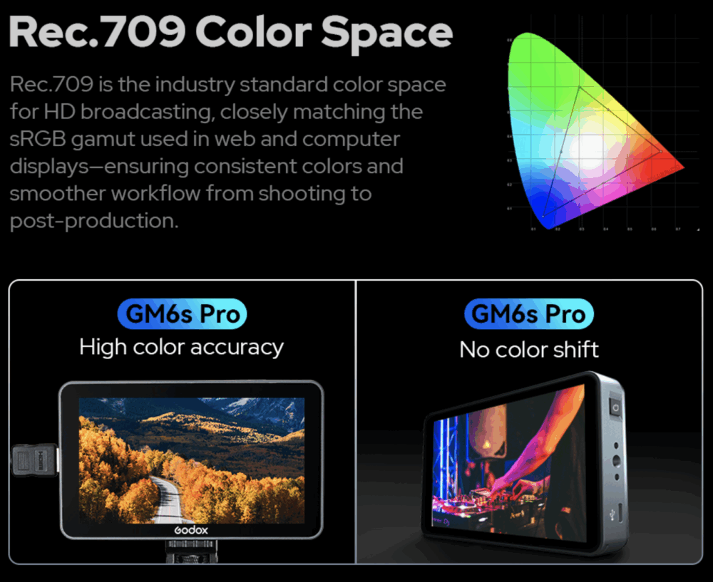 The new GM6S “Pro” series is impressively bright, at 2000 nits; a beautiful improvement over the others with just 1000-1200 nits. That brightness, plus the color range, dynamic range, and overall fidelity (accuracy) makes this a gorgeous display. If you do a lot of work outside in full sun, then it becomes especially true that we recommend this latest upgrade to the GM6S!