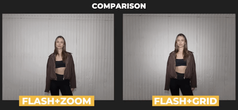 Here’s a look at the effect you get when you combine the zoom feature on your flash with an added grid, or in this case, a MagGrid. As the light tightens, make sure that you direct or point it at your subject more accurately. If you don’t mind this step, you may end up lighting the wrong part of your subject’s body.