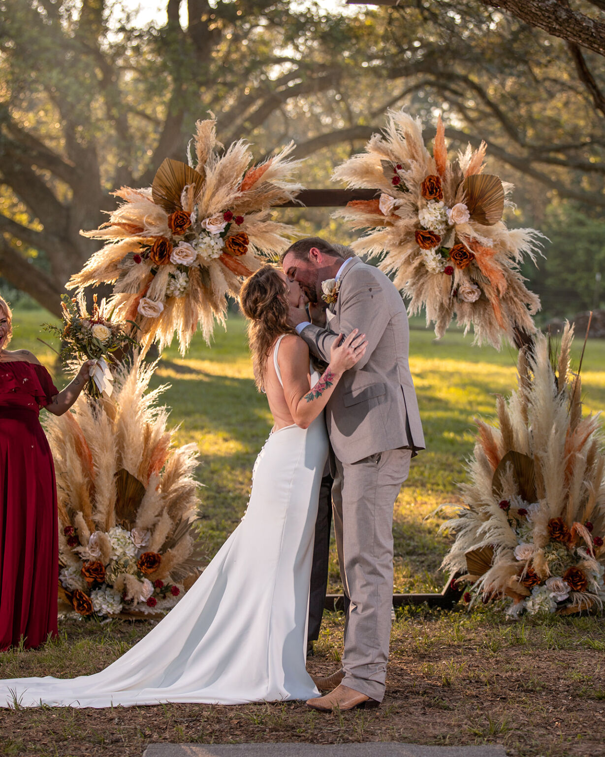 At a rustic boho wedding, the ceremony space and floral design often become the centerpiece of the day. Whether it’s a hand-built altar adorned with pampas grass, a floral arch bursting with earthy tones, or aisle décor lined with wildflowers, these design elements set the stage for the couple’s vows and should be photographed with intention.